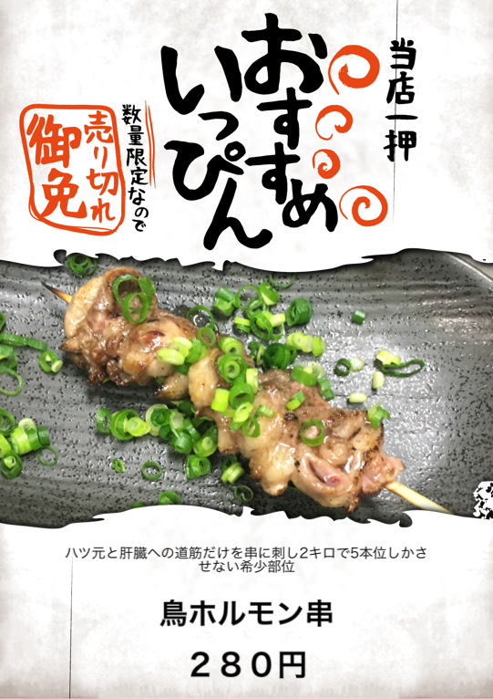 ハツ元と肝臓への道筋だけを串に刺し2キロで5本位しかさせない希少部位