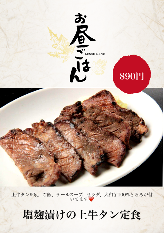 上牛タン90g、ご飯、テールスープ、サラダ、大和芋100%とろろが付いてます❤️