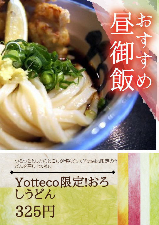 つるつるとしたのどごしが堪らない、Yotteko限定のうどんを召し上がれ。
