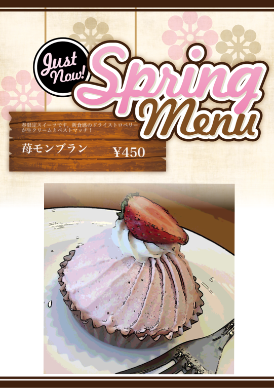 春限定スイーツです。新食感のドライストロベリーが生クリームとベストマッチ!