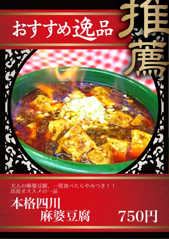 大人の麻婆豆腐、一度食べたらやみつき!!
