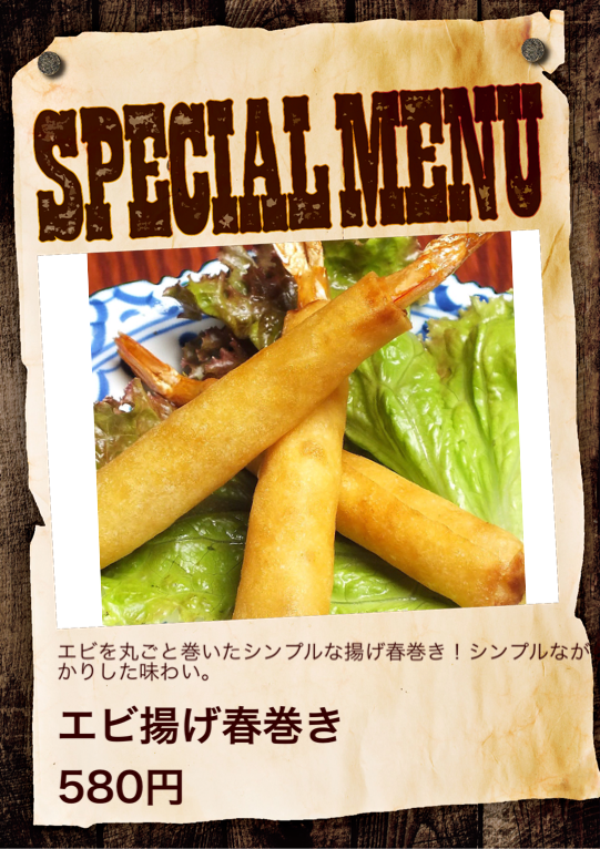 エビを丸ごと巻いたシンプルな揚げ春巻き!シンプルながらしっかりした味わい。