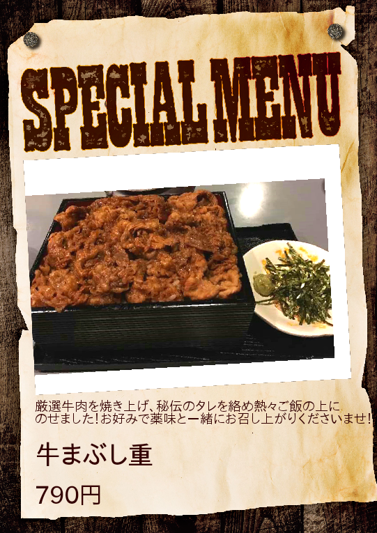 厳選牛肉を焼き上げ、秘伝のタレを絡め熱々ご飯の上に