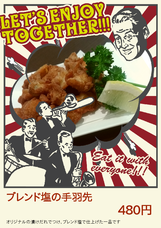 オリジナルの漬けだれでつけ、ブレンド塩で仕上げた一品です
