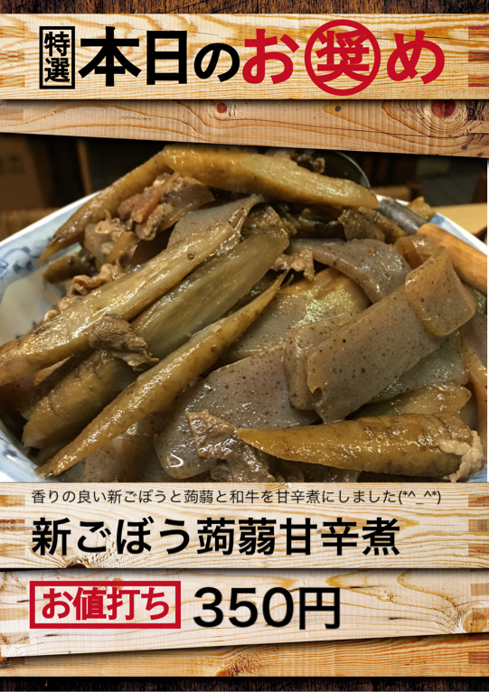 香りの良い新ごぼうと蒟蒻と和牛を甘辛煮にしました(*^_^*)