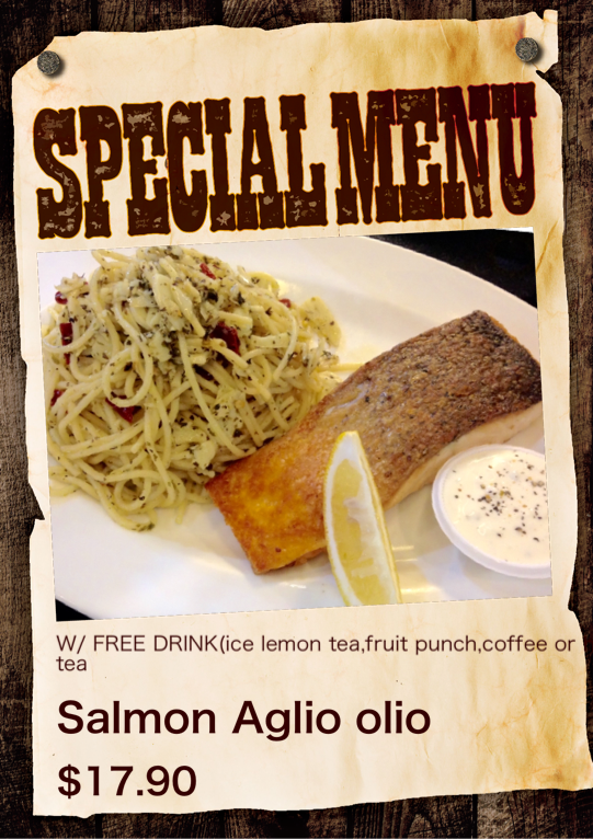 W/ FREE DRINK(ice lemon tea,fruit punch,coffee or hot tea