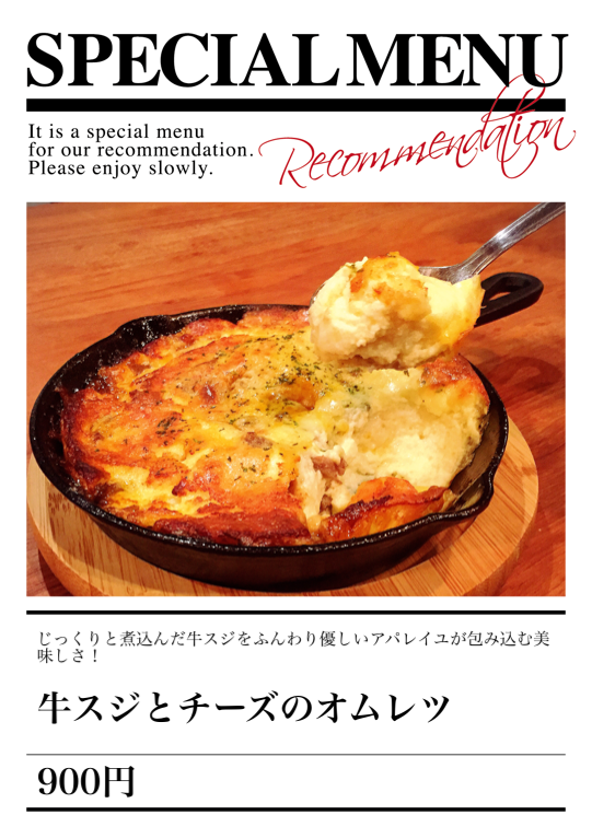 じっくりと煮込んだ牛スジをふんわり優しいアパレイユが包み込む美味しさ!