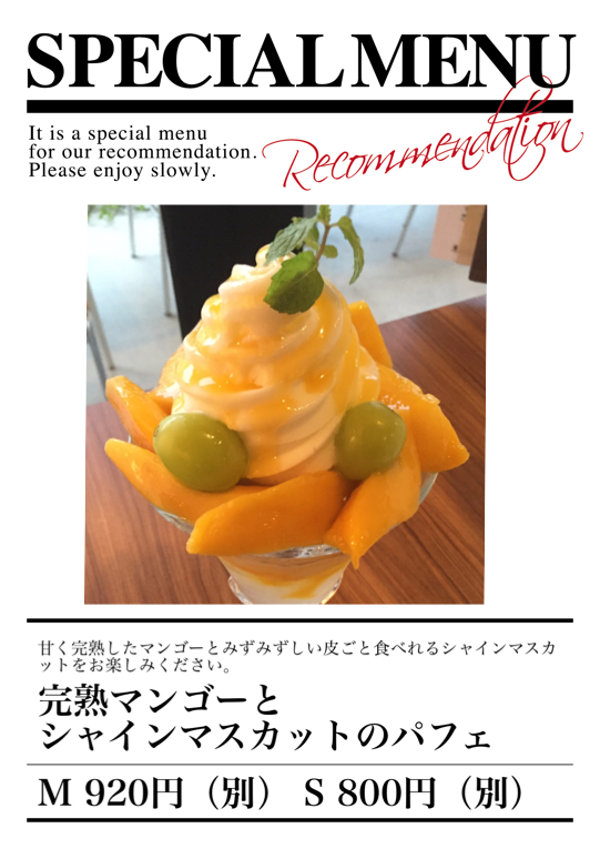 甘く完熟したマンゴーとみずみずしい皮ごと食べれるシャインマスカットをお楽しみください。