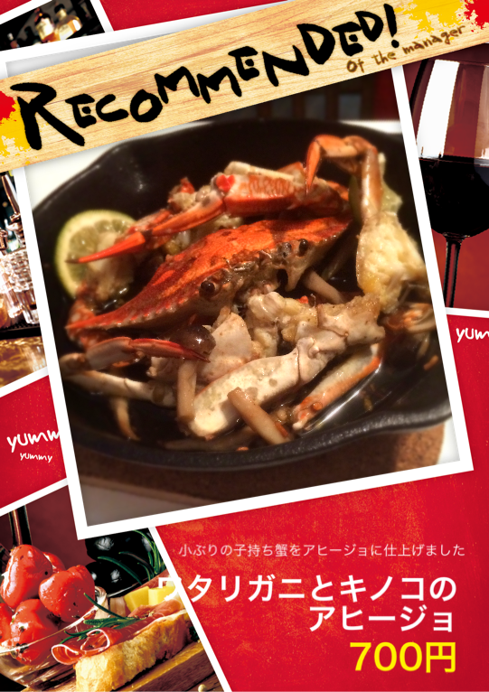 小ぶりの子持ち蟹をアヒージョに仕上げました