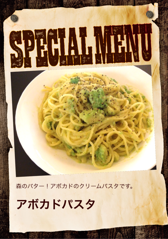 森のバター!アボカドのクリームパスタです。