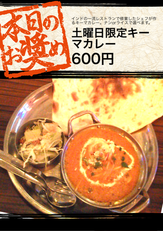 インドの一流レストランで修業したシェフが作るキーマカレー。ナンorライスで選べます。