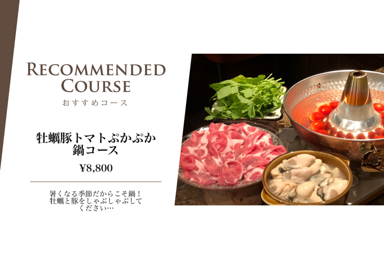 牡蠣豚トマトぷかぷか鍋コース