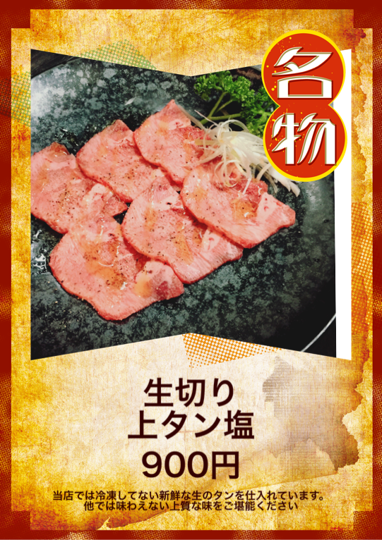 当店では冷凍してない新鮮な生のタンを仕入れています。