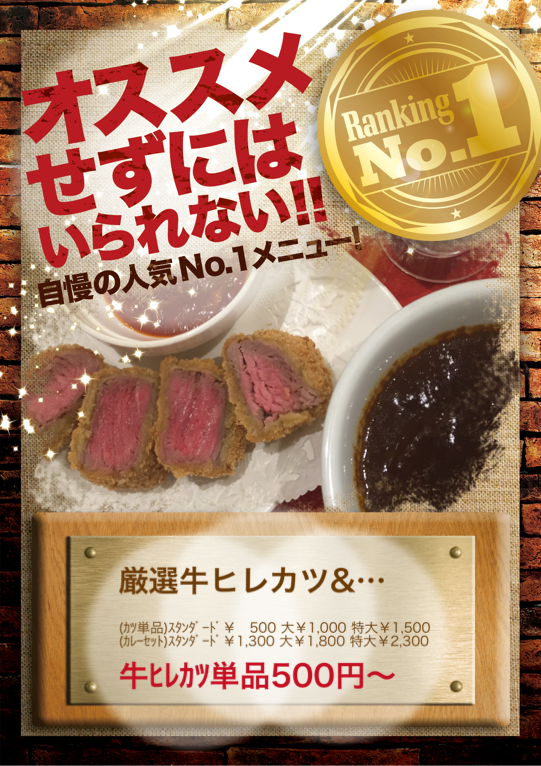 牛ヒレカツ単品500円〜