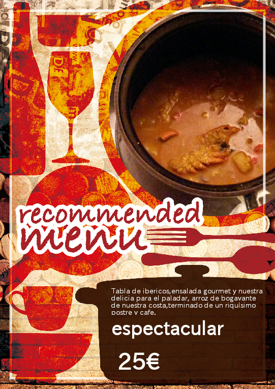 Tabla de ibericos,ensalada gourmet y nuestra delicia para el paladar, arroz de bogavante de nuestra costa,terminado de un riquísimo postre y cafe.
