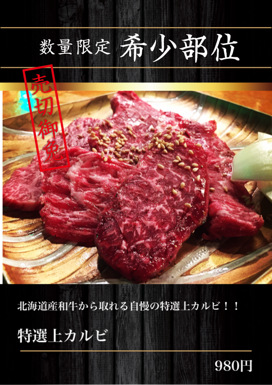 北海道産和牛から取れる自慢の特選上カルビ!!