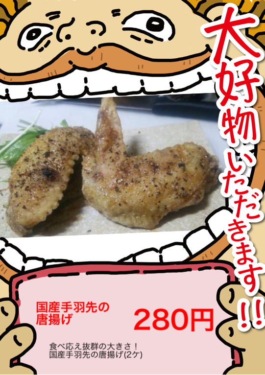 国産手羽先の唐揚げ(2ケ)