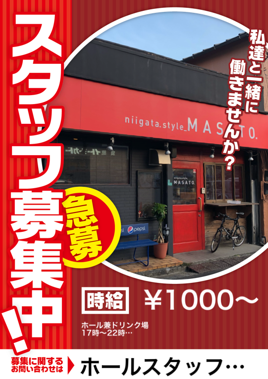 ホールスタッフ募集中。