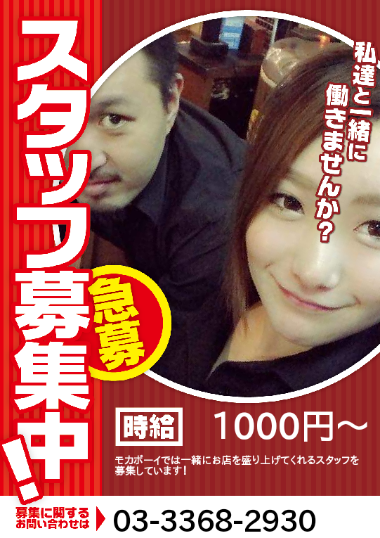 モカボーイでは一緒にお店を盛り上げてくれるスタッフを募集しています!