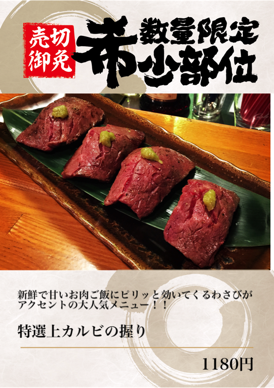 新鮮で甘いお肉ご飯にピリッと効いてくるわさびがアクセントの大人気メニュー!!