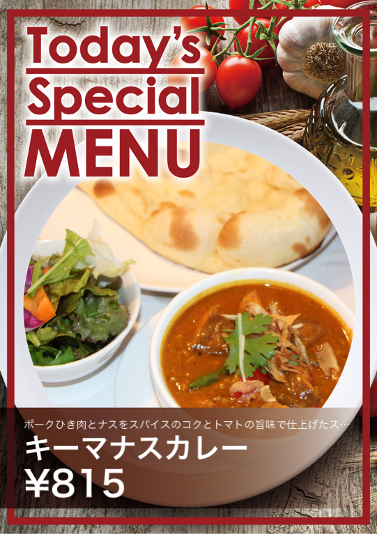 ポークひき肉とナスをスパイスのコクとトマトの旨味で仕上げたスパイシーキーマナスカレーです。
