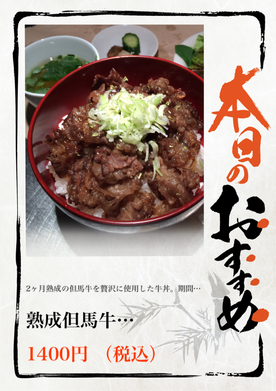 2ヶ月熟成の但馬牛を贅沢に使用した牛丼。期間限定商品です。