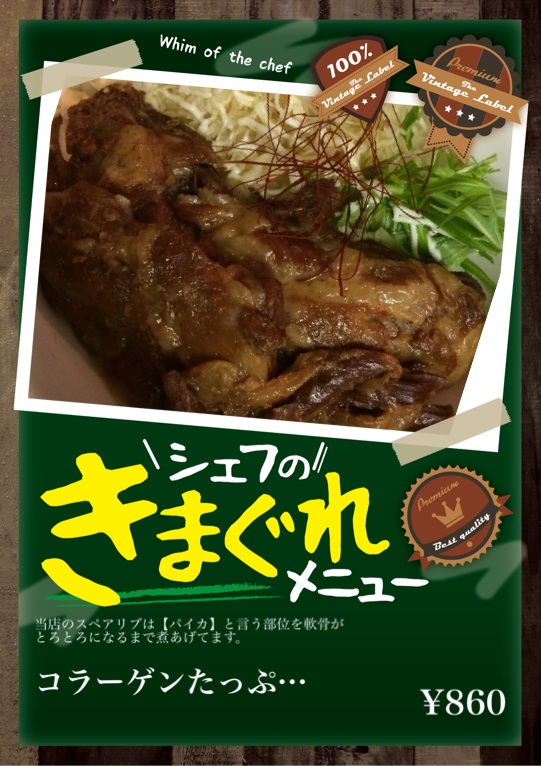 当店のスペアリブは【パイカ】と言う部位を軟骨がとろとろになるまで煮あげてます。