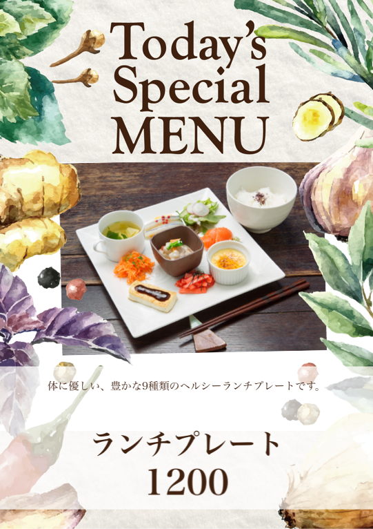体に優しい、豊かな9種類のヘルシーランチプレートです。