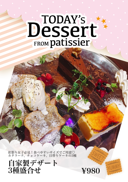 カタラーナ、チョコケーキ、日替りケーキの3種