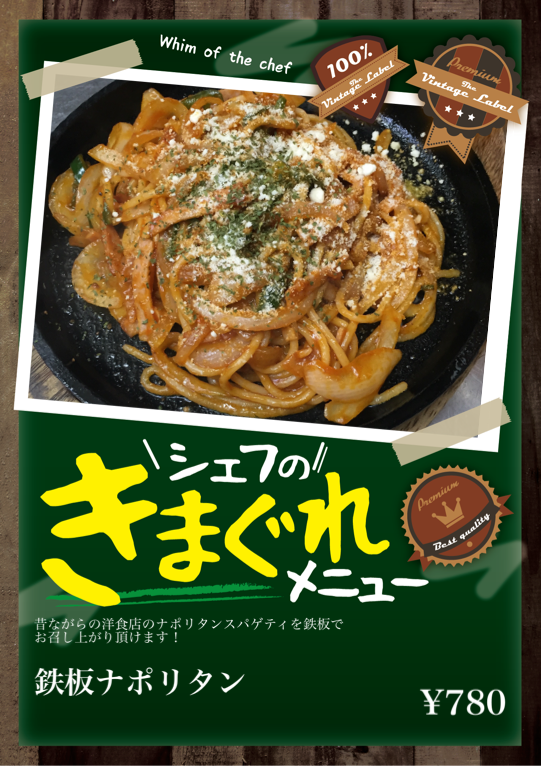 昔ながらの洋食店のナポリタンスパゲティを鉄板でお召し上がり頂けます!