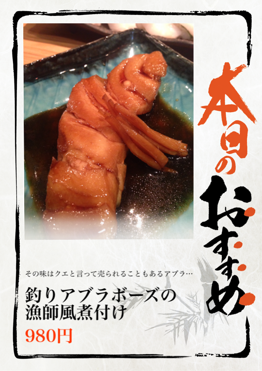 その味はクエと言って売られることもあるアブラボーズ!濃厚な脂なのにさっぱりとして旨い!