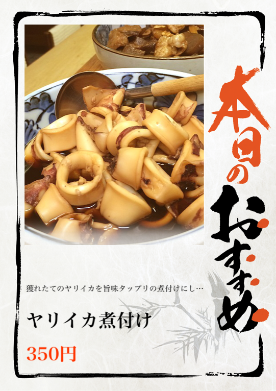獲れたてのヤリイカを旨味タップリの煮付けにしました!