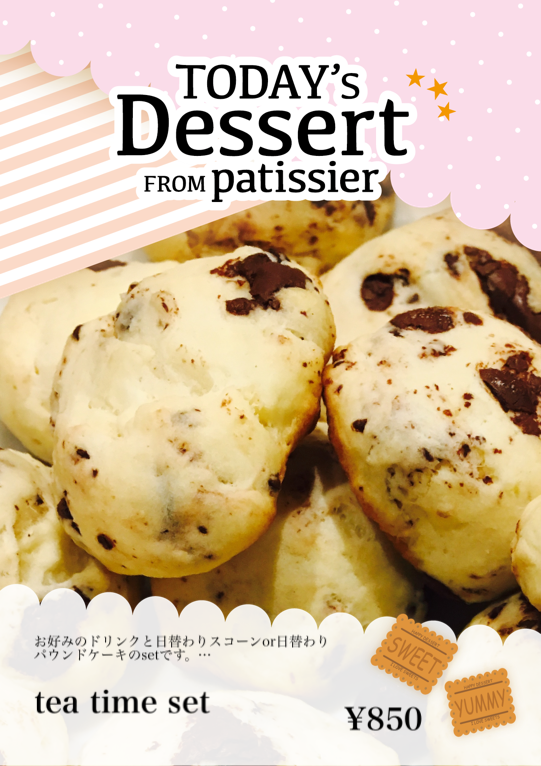 お好みのドリンクと日替わりスコーンor日替わりパウンドケーキのsetです。