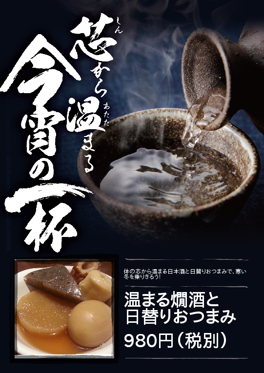 体の芯から温まる日本酒と日替りおつまみで、寒い冬を乗りきろう!