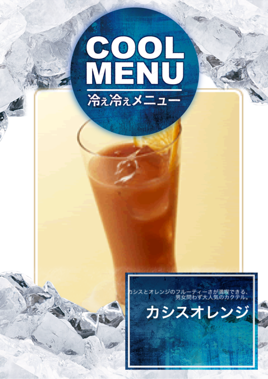 カシスとオレンジのフルーティーさが満喫できる、男女問わず大人気のカクテル。