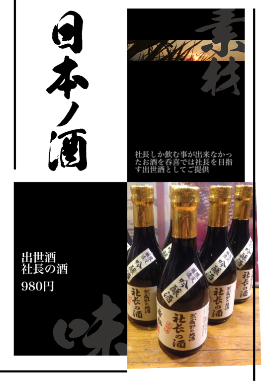 社長しか飲む事が出来なかったお酒を呑喜では社長を目指す出世酒としてご提供