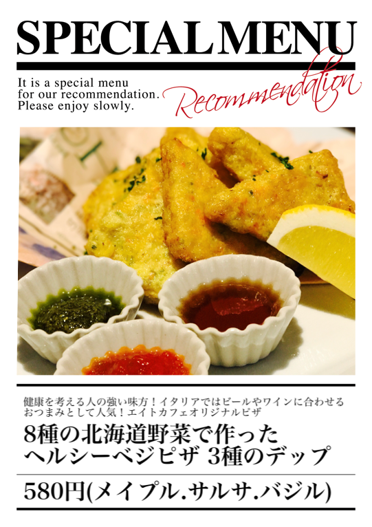 健康を考える人の強い味方!イタリアではビールやワインに合わせるおつまみとして人気!エイトカフェオリジナルピザ